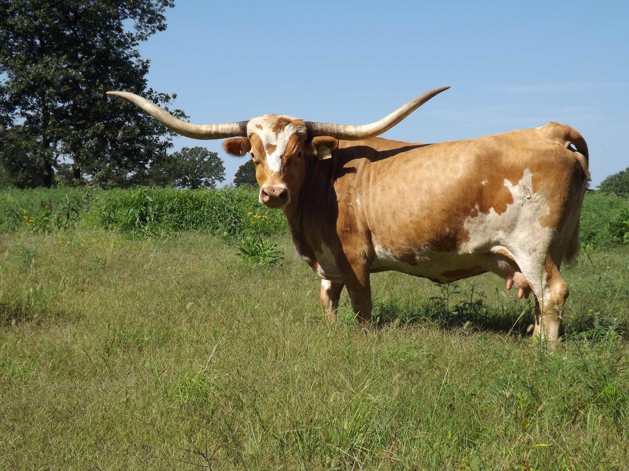 This is one of our best cows!!! She is currently over 80" total horn. She produced HR Slam's Rose, HR Rosebud, Big Red HR, Rowdy HR and many others....bull or heifer, makes no difference, they are winners. Confirmed pregnant to RHF Sharp Shooter for a May 2022 calf.